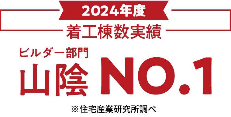 鳥取県下戸建て新築住宅ランキング 鳥取県NO.1(2024年度建設工業新聞調べ) 着工棟数 ビルダー部門山陰NO.1(2024年度住宅産業研究所調べ) 分譲シェア 山陰NO.1(2023年度住宅産業研究所調べ) LIXILメンバーズコンテスト2024 TH特別賞 |