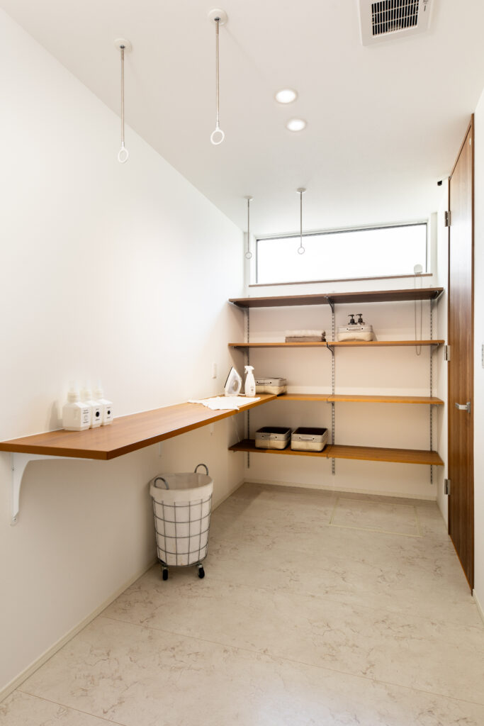 キッチン⇒パントリー⇒ドライルームへと一直線に抜ける動線で、家事効率をアップ。 お料理と洗濯を同時進行でき、毎日の暮らしがぐっと快適になります。