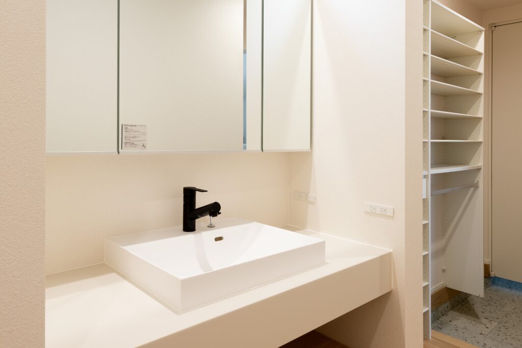 お子さんがいる共働きご家庭が多い。晴れの日が少なくてPM2.5、黄砂、花粉の飛散量も多い……炊事、掃除、洗濯の負担が大きくなりがちな環境の中でも軽快に暮らせるよう、パントリーやドライルーム、土間収納、家族用玄関などを独自に設計しています。
