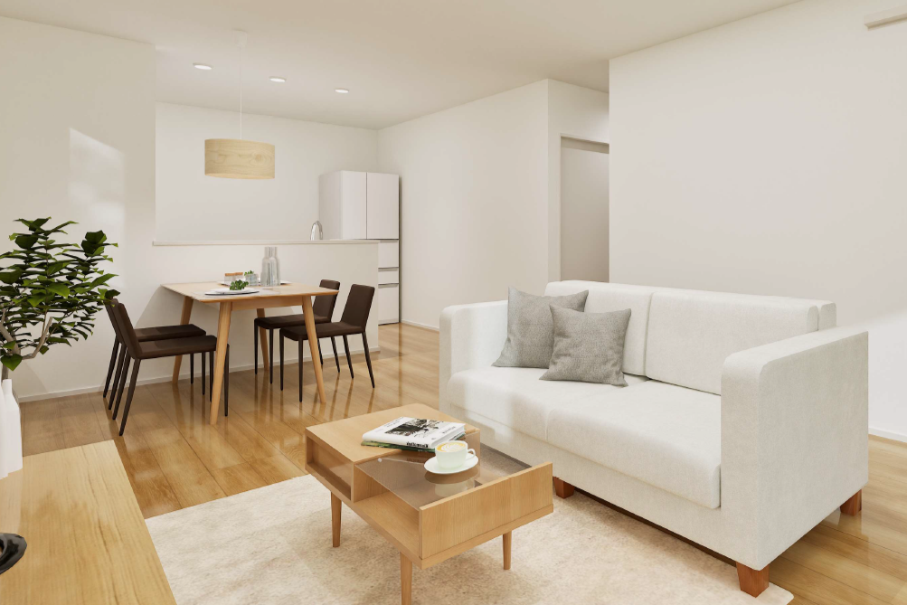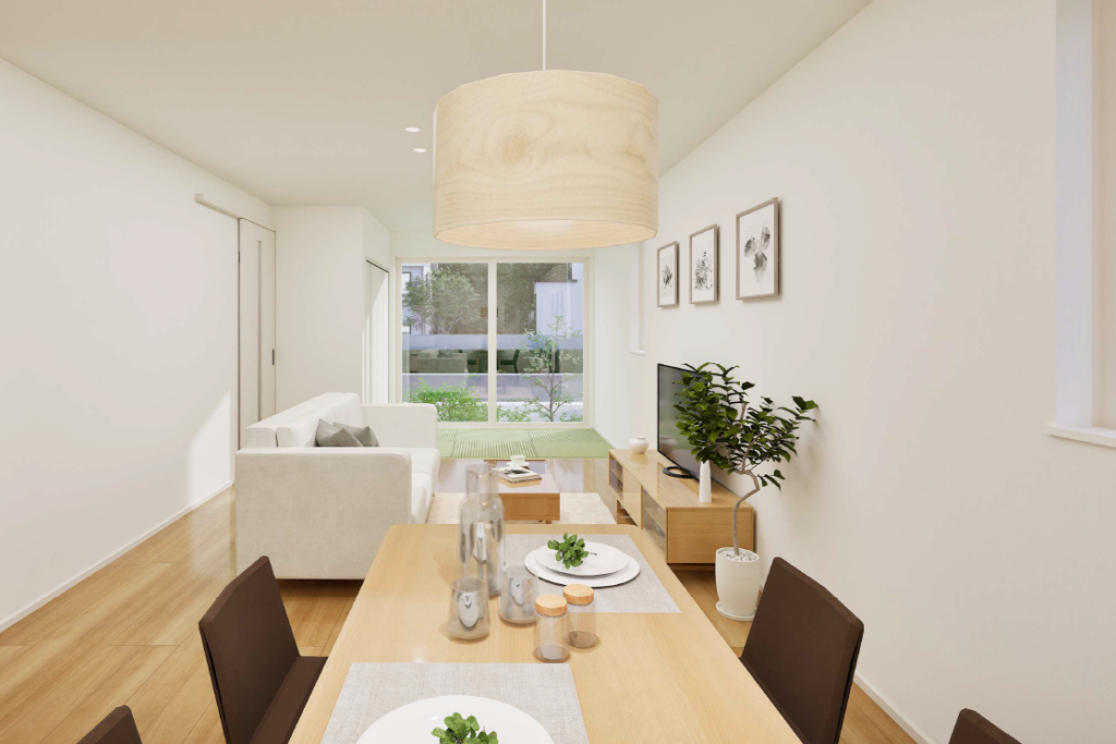 タタミコーナーつきの約23帖ゆったりLDK。ワンフロアで暮らしが完結するから、移動がスムーズで毎日の家事や生活が快適に。段差のない動線でストレスフリーな暮らしを実現します。