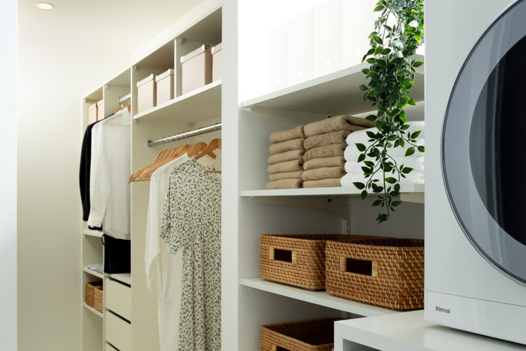 モデルハウスで気に入った、バス⇒脱衣⇒ドライルーム⇒ファミクロ⇒キッチンの動線。採用してよかった。