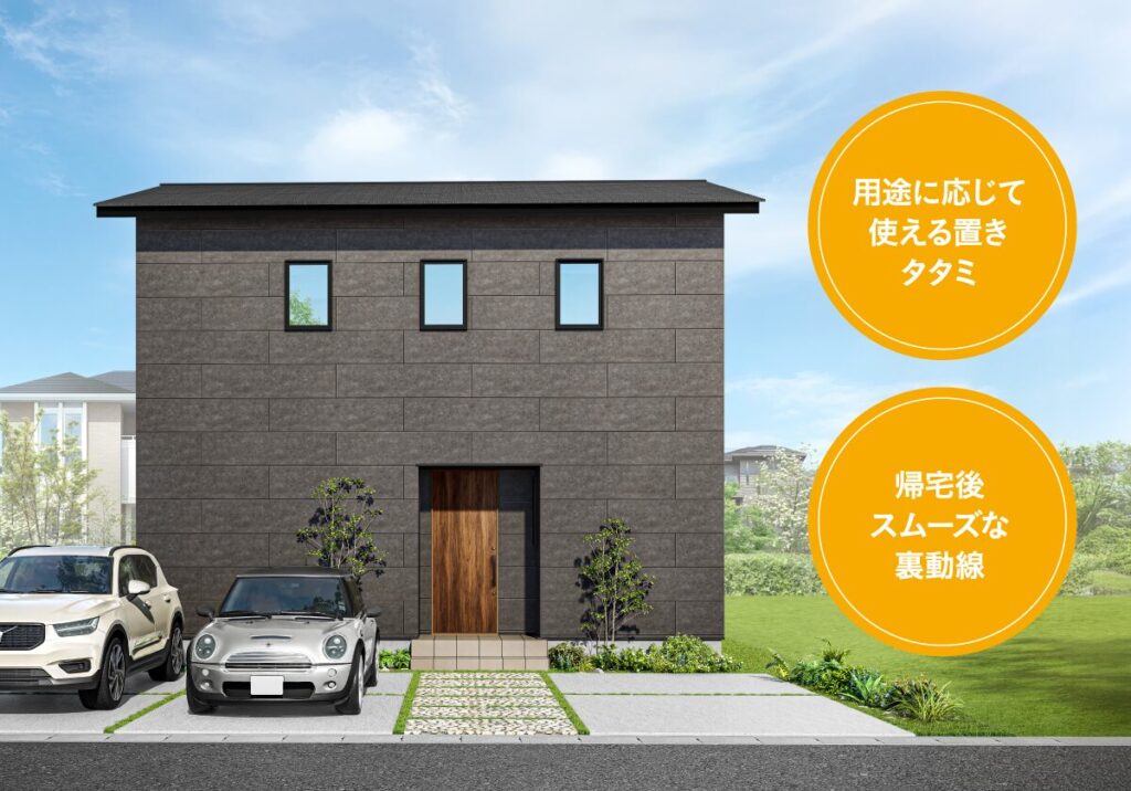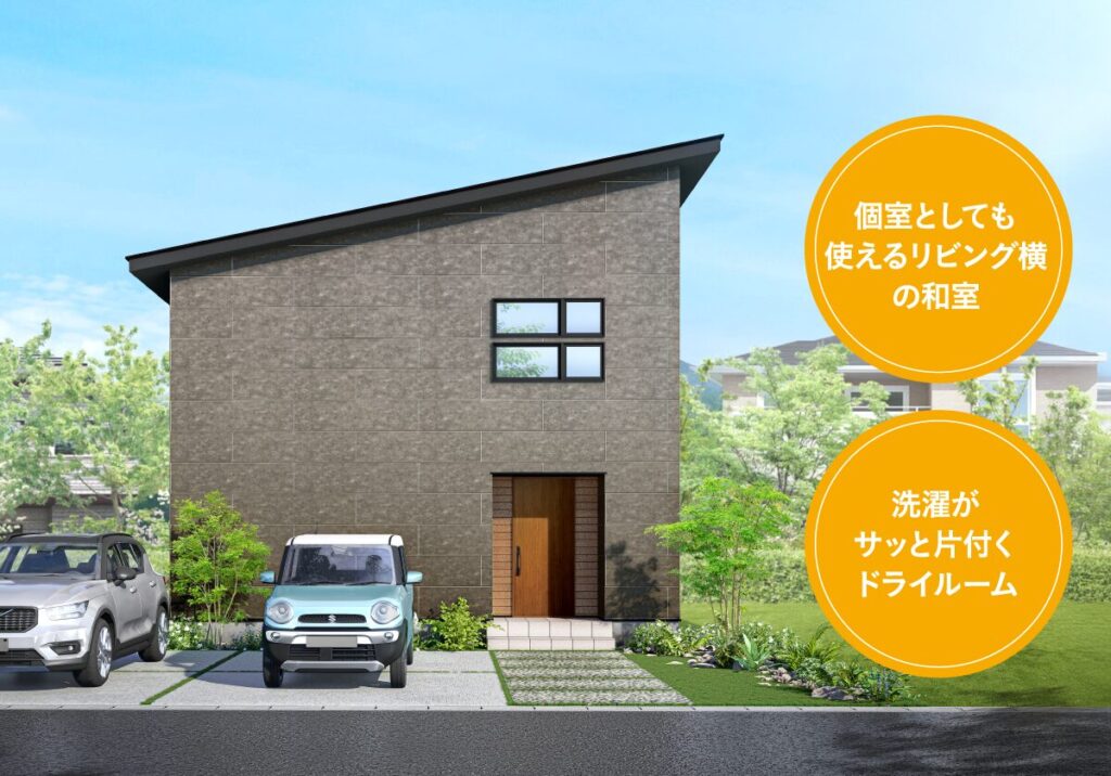 お子さんがいる共働きご家庭が多い。晴れの日が少なくてPM2.5、黄砂、花粉の飛散量も多い……炊事、掃除、洗濯の負担が大きくなりがちな環境の中でも軽快に暮らせるよう、パントリーやドライルーム、土間収納、家族用玄関などを独自に設計しています。
