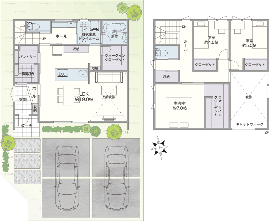 LDK19帖・主寝室7帖・洋室5帖・洋室4.5帖