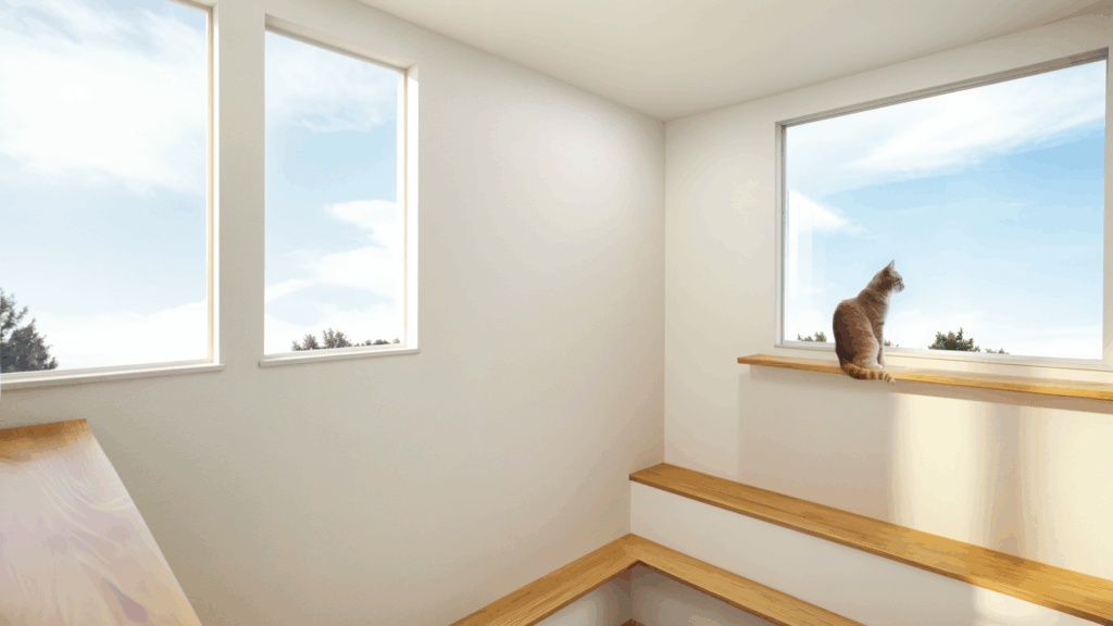 全国どこでも同じ窓を提案する大手住宅会社とは異なる視点から、山陰エリアの日射を科学的に解析。さらにそれぞれの敷地の条件を読み解きながら、1年を通じて心地よい光を感じる窓のサイズ、方角、高さ、形状を導き出しています。