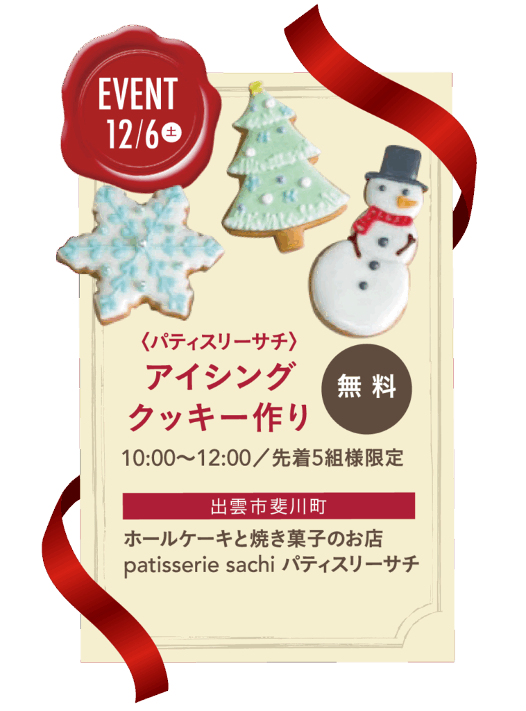 アイシングクッキーのプレゼントやワークショップもお楽しみいただけます!