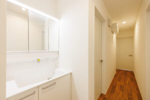 お子さんがいる共働きご家庭が多い。晴れの日が少なくてPM2.5、黄砂、花粉の飛散量も多い……炊事、掃除、洗濯の負担が大きくなりがちな環境の中でも軽快に暮らせるよう、パントリーやドライルーム、土間収納、家族用玄関などを独自に設計しています。