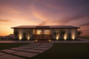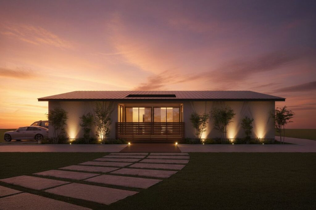 夜ならではの外観の見え方や、外構照明の雰囲気をご覧いただけます。昼間とは印象が変わるため、防犯性や帰宅時の安心感を確認したい方におすすめです。