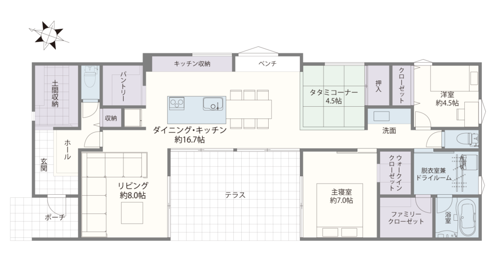 〈LDK24.7帖+タタミ4.5帖〉〈主寝室7帖、居室4.5帖〉〈SCL3帖、パントリー2帖、FCL2.5帖〉