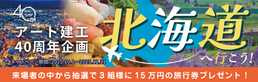 キャンペーン期間中に、アート建工グループ(アート建工、トコスホーム、マチリブ、ココスム、マチリブ不動産)へご来場の住宅を検討中のご家族様の中から、抽選で3組様に15万円分のJTB旅行費用をプレゼントいたします!