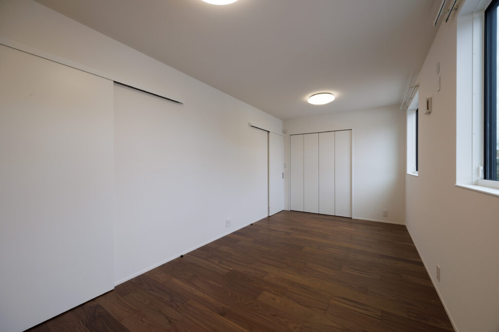 お子様の成長に合わせて使い方を変えられる、間仕切り可能な洋室。小さいうちは広く使い、将来は個室として分けるなど、ライフスタイルの変化に柔軟に対応できます。
