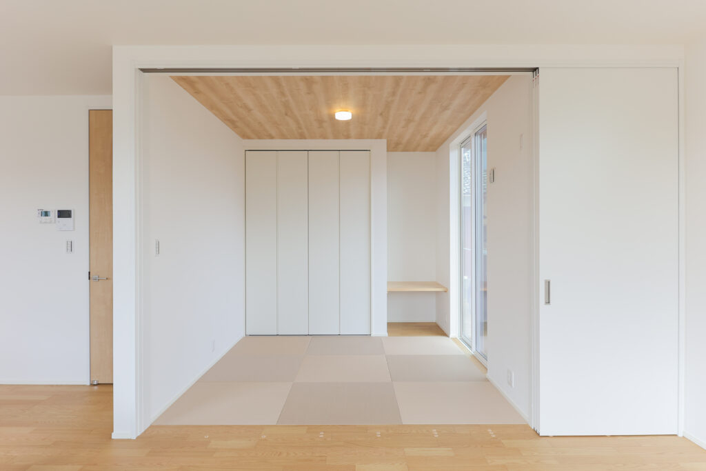 リビングと廊下の両方から出入りできる4.5帖の和室は押し入れを設置。リビングの続きとしても客間としても重宝し、家族のライフステージに合わせて柔軟に使えます。