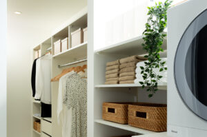 キッチンの背面動線はドライルーム、ファミクロへとスマートにつながり、料理と洗濯を同時にこなせる快適な家事スタイルを実現します。(画像はイメージです)