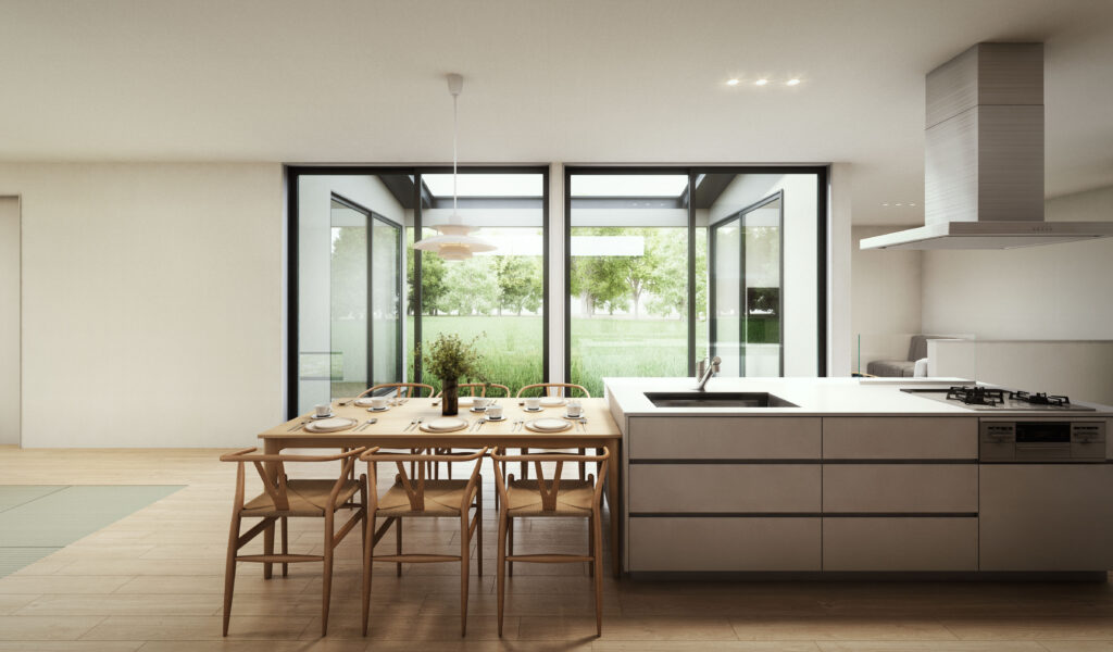 住まいの中心に据えたLDKは、家族をつなぐ❝ハブ❞。キッチンから全体を見渡せることで、どこにいても声が届く安心感。年齢を重ねても暮らし方を変えず、長く心地よく住み続けられます。