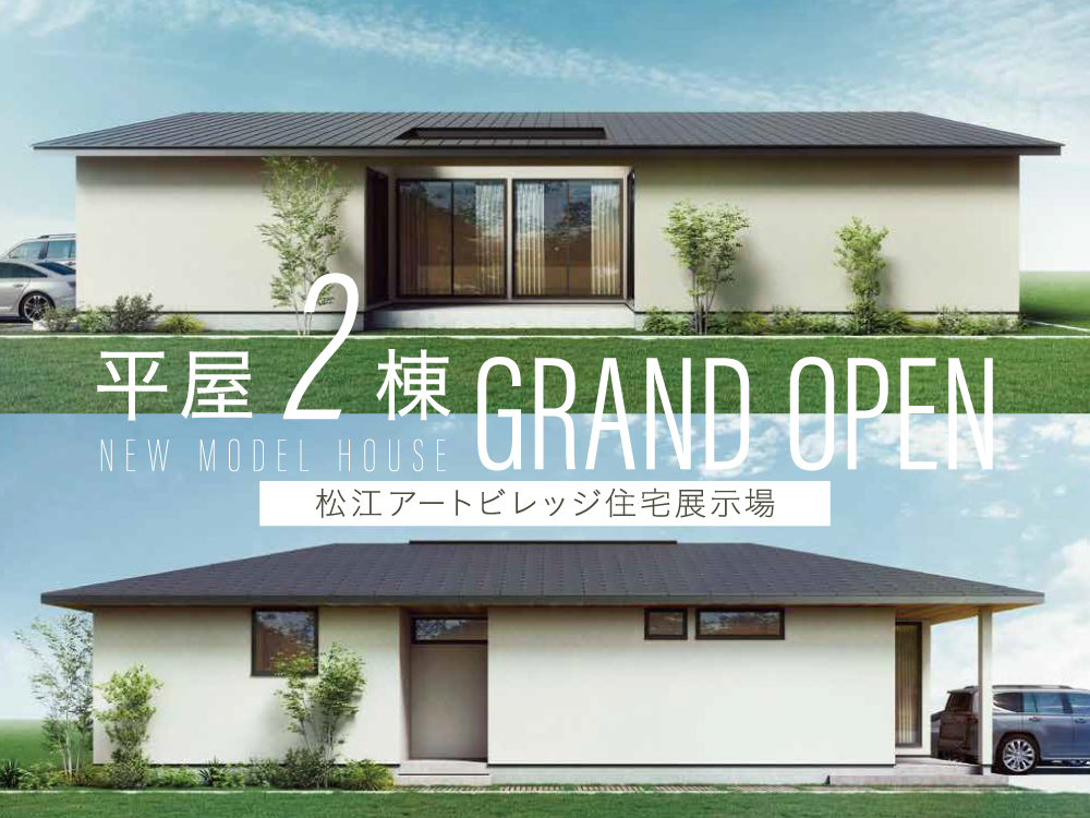 2つの平屋モデルハウスが一度に比較できるアートビレッジ展示場が、いよいよ松江に登場!