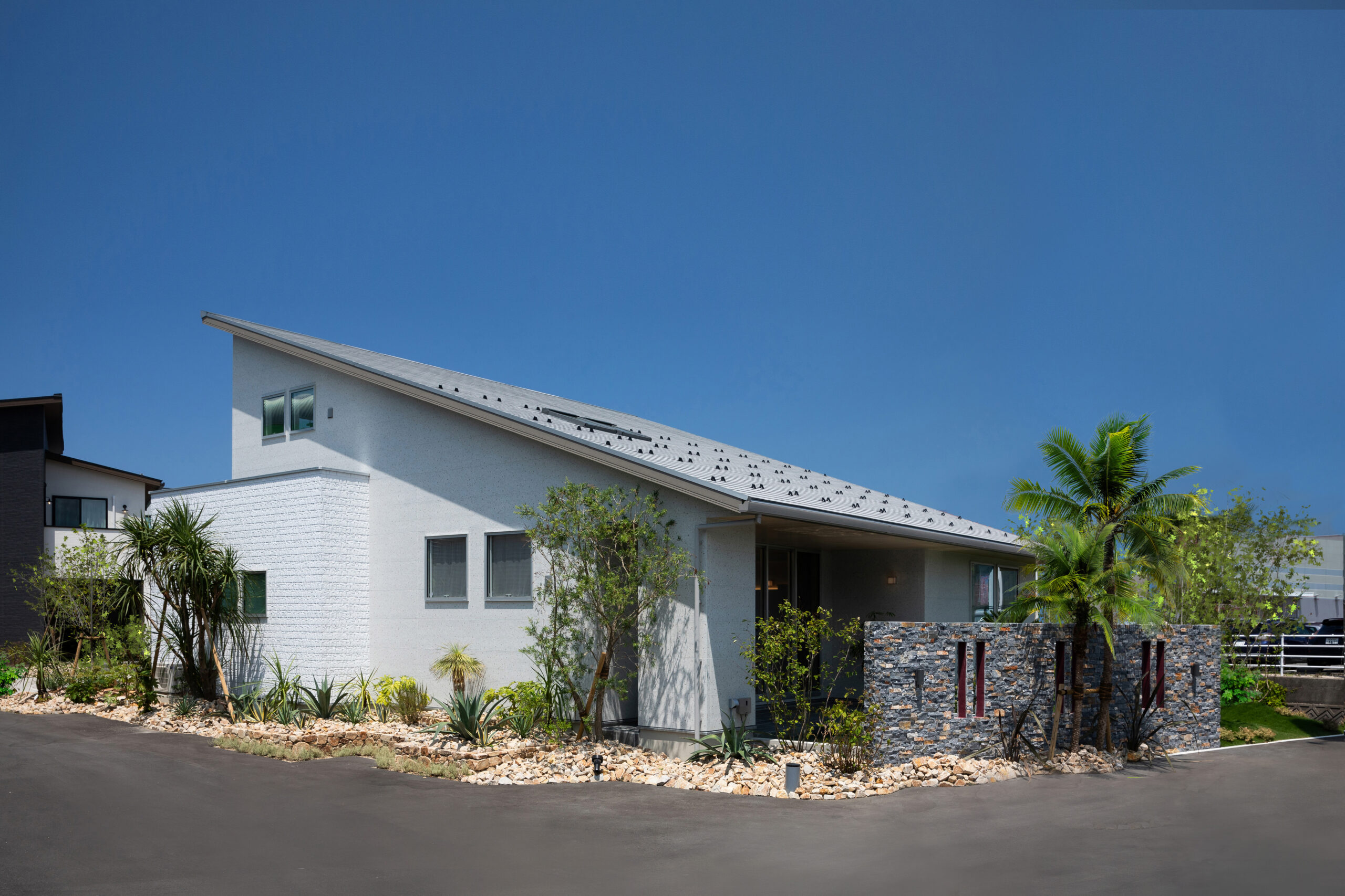 詳しく見る片流れ屋根の勾配を生かした、垂直方向への広がりが印象的な住まい。吹き抜けのLDKから続く軒下のあるテラス。お友だちを招きたくなる、おおらかで健康的なライフスタイルをご提案しています。