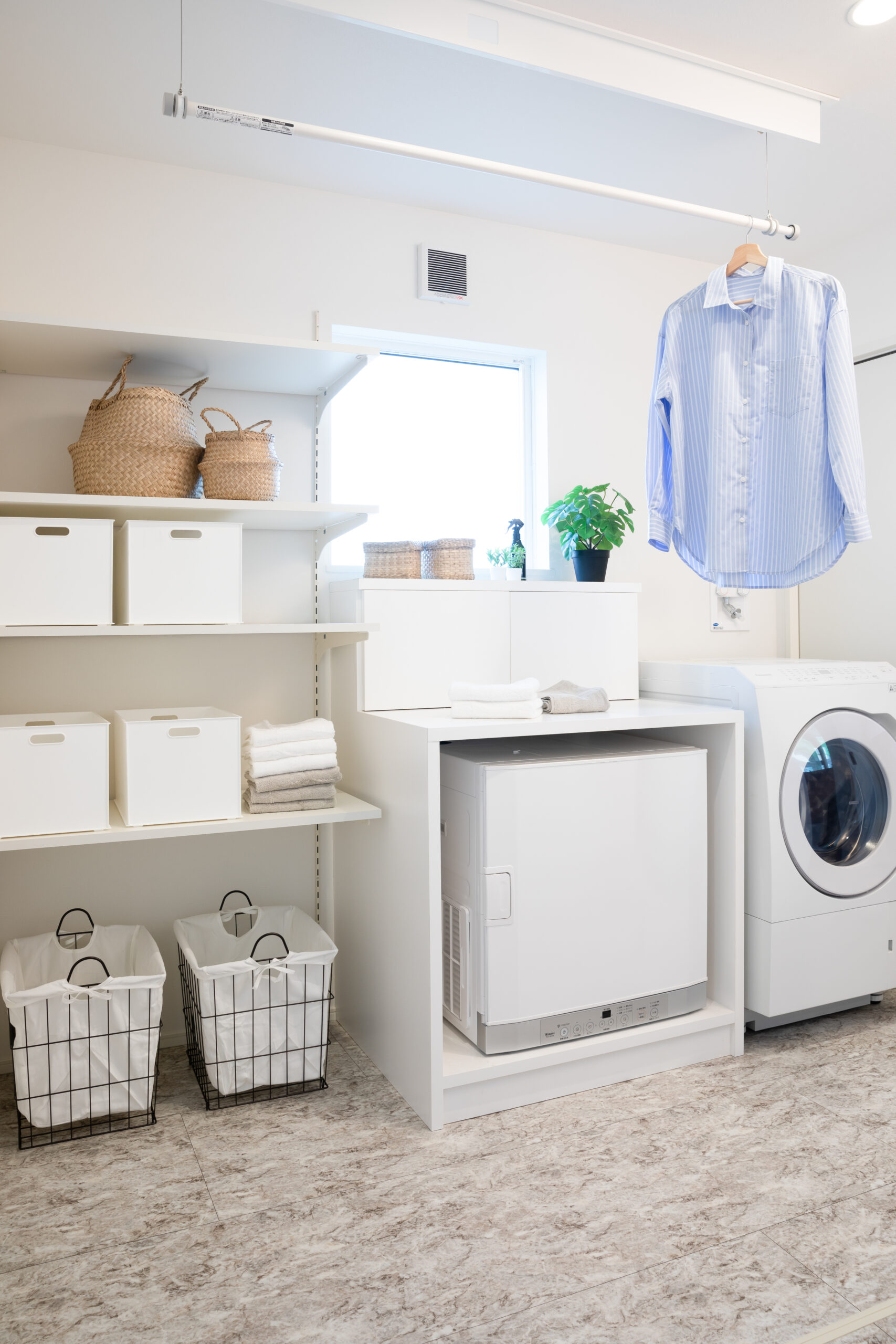 お子さんがいる共働きご家庭が多い。晴れの日が少なくてPM2.5、黄砂、花粉の飛散量も多い……炊事、掃除、洗濯の負担が大きくなりがちな環境の中でも軽快に暮らせるよう、パントリーやドライルーム、土間収納、家族用玄関などを独自に設計しています。