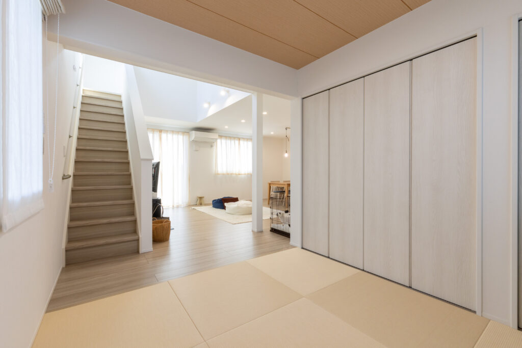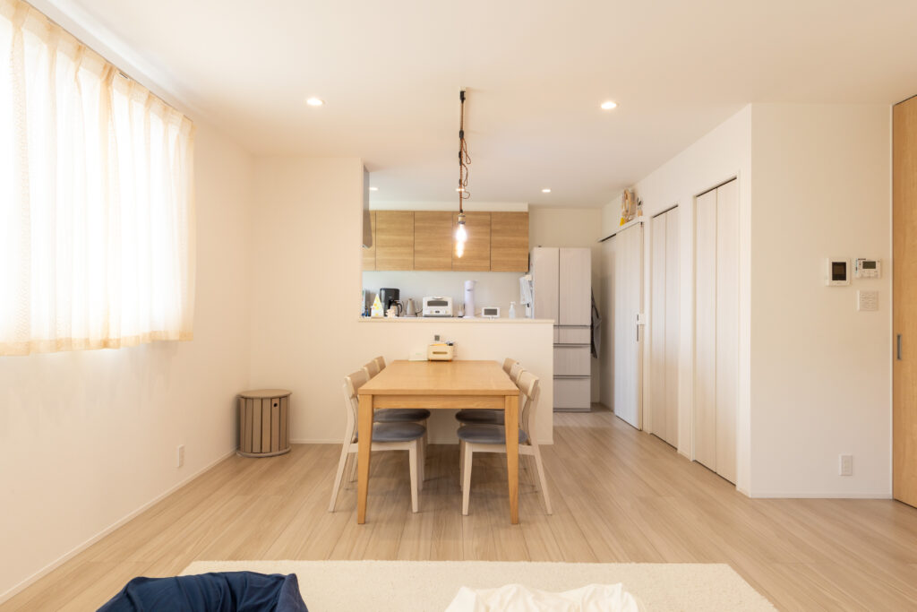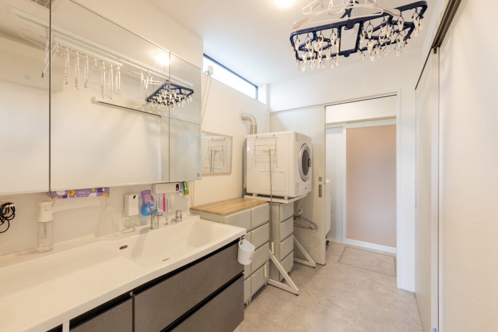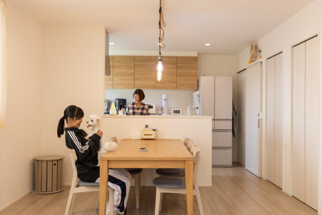同じ小学校区内での住み替えを第一条件に、家族5人と愛犬が快適に暮らせる住まいづくりをスタート。家事ラク動線を重視し、キッチンからドライルーム、FCLへとつながる効率的な間取りを実現しました。さらに広々としたLDKと吹き抜けにより、家族全員が一つの空間で心地よく過ごせる工夫も。高い断熱性と暮らしやすさを兼ね備え、日常の家事も団らんもより豊かになりました。
