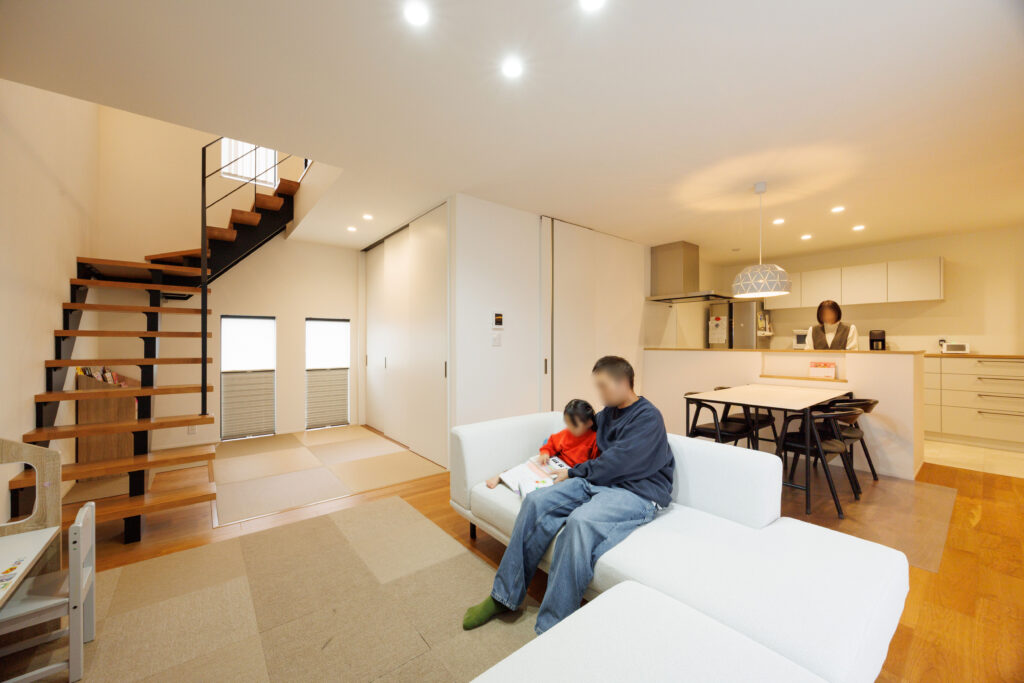 家には、住む人の心身を癒し、育てる力があります。ライフスタイルにお子様が加わったY様ご夫妻にとって、家に求める役割が変化したのは当たり前。満足していたマンション住まいから一戸建てが視野に入り、寛ぎ方や優先順位も変わりました。安全性、開放感、つながり感、効率的な家事動線、余白のある暮らし……。ご家族にとって大切なものが、家づくりを進める話し合いの中で浮き上がってきました。