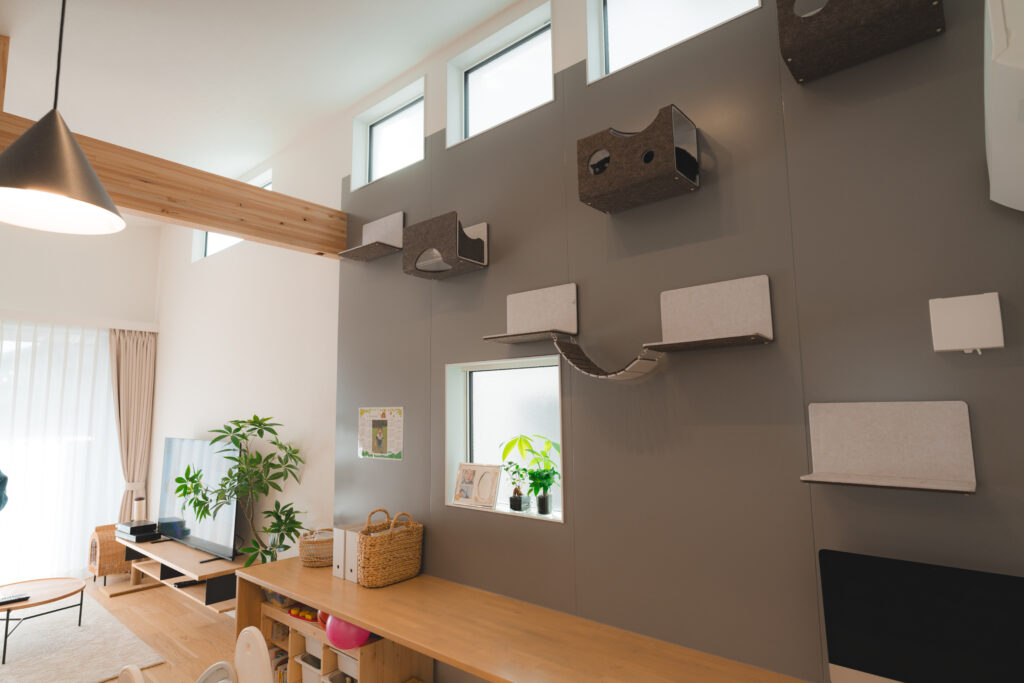 家づくりを考え始めた当初から、このご家族が大切にしていたのは、毎日の暮らしが無理なく、心地よく続いていくことでした。平屋という住まいのかたちを選び、家族が自然と集まるリビングを中心に、動線や過ごしやすさを重視した間取りを計画。日の入り方まで考えられた設計によって、室内にはやわらかな光が広がり、時間帯ごとに違った表情を見せてくれます。また、猫と一緒に暮らすことを前提にした工夫や、快適な室内環境にも配慮しながら、住まい全体を整えていきました。数ある選択肢の中で、信頼して任せられるパートナーと出会い、一つひとつの判断を積み重ねて完成した住まいです。