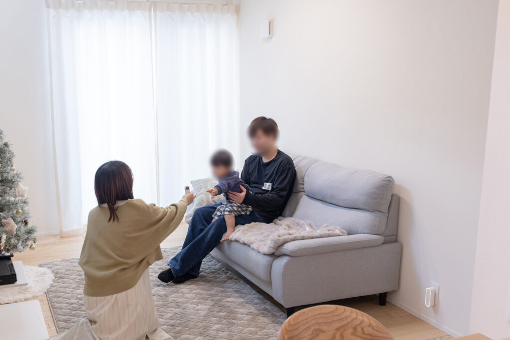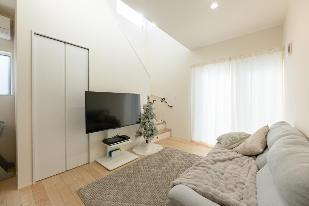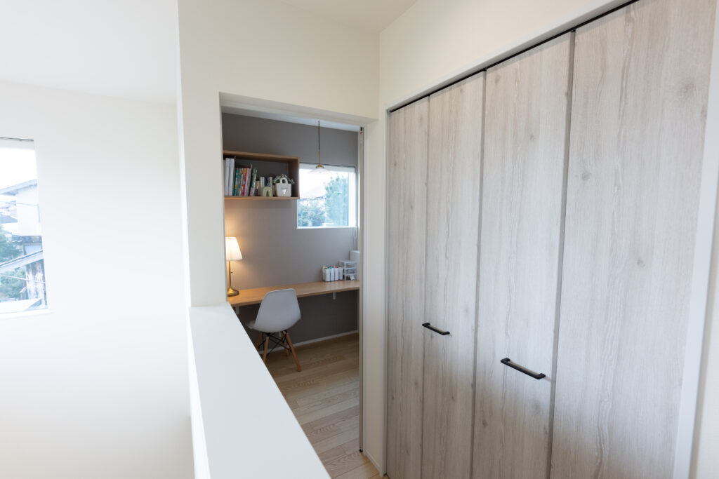 築約70年の日本家屋で暮らしていた若い2人にとって、家の中が明るいこと、一人になれる場所があることは、家を建てる上で大切なポイントでした。面積が限られる中、リビングフロアにはダイニングを設けず、自然光が十分に差し込む開放的な空間をレイアウト。寝室や玄関をコンパクトに抑えるなどして、それぞれの個室も確保しました。また、隣接する母屋の風呂を使うことで広いドライルームとFCLを実現。自分たちのライフスタイルと価値観を大切に造り上げていきました。