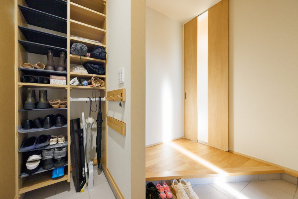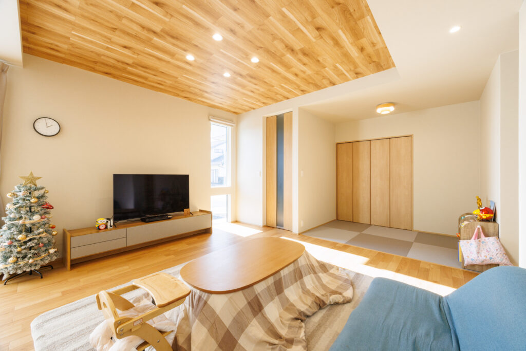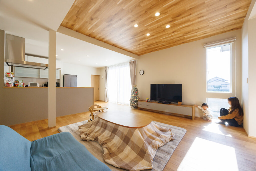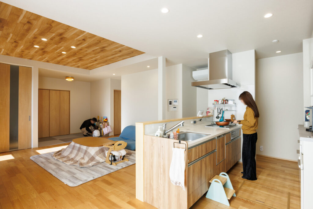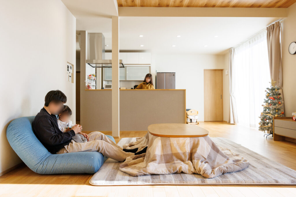 モデルハウスやSNSでは一見キラキラした暮らしが紹介されていますが、家族にとって暮らしやすい家はそれぞれ違います。Y様ご夫妻は、“普通”にとらわれず、自分たちの価値観を見つめ直しました。「ダイニングは要らない」「エアコンはリビングから見えない場所に」「ゾーニングより一体的な広さ」――。そうして実現したのは、開放的なのに生活感を感じさせない明るいリビングフロア。利便性の高い家事動線が、日常を支えるとともに非日常感もさりげなく演出しています。